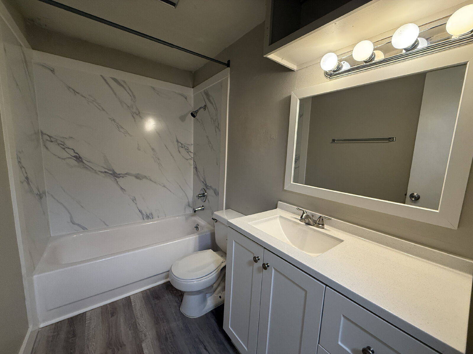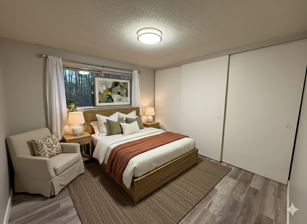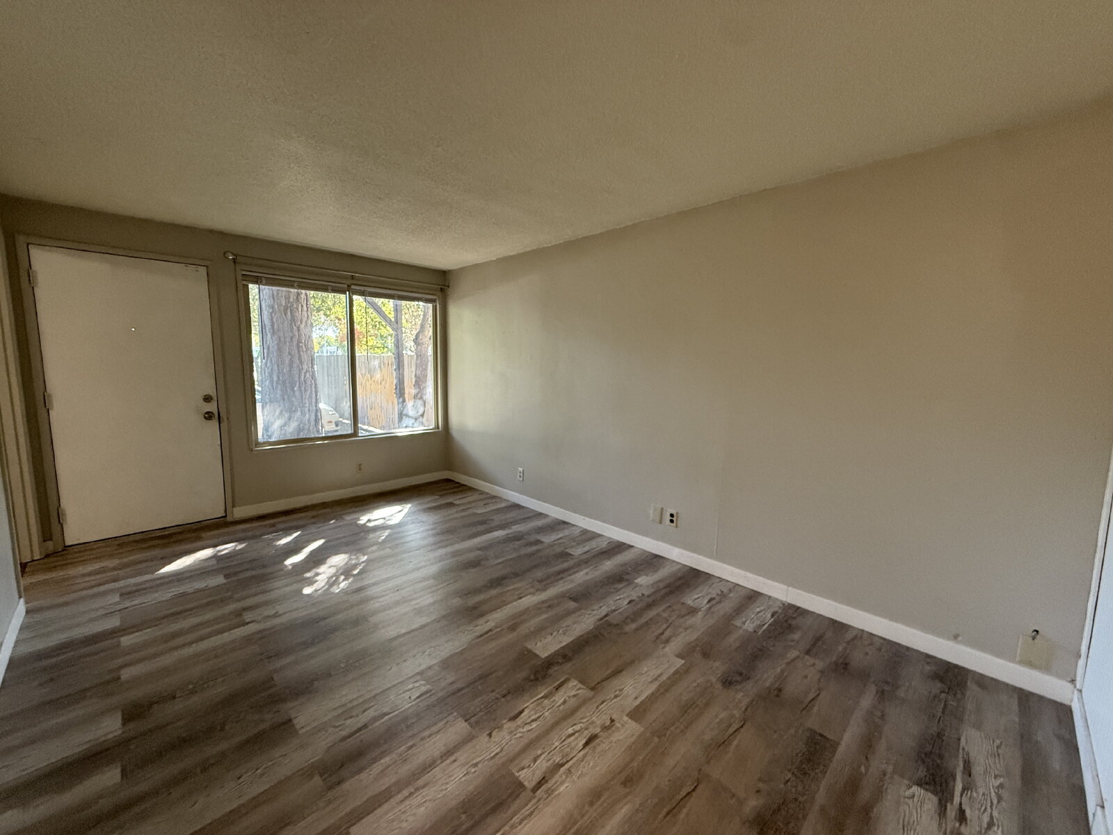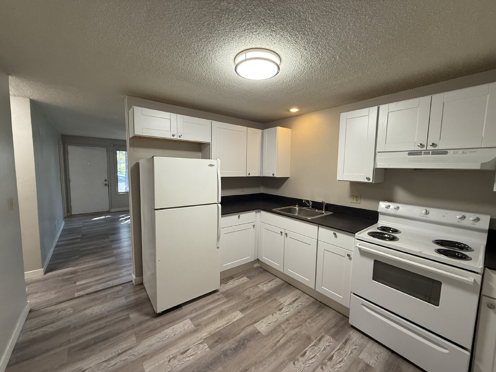 This ground level is located in Eugene just minutes from downtown. It features two bedrooms, one full bath, a living room, a kitchen, and an enclosed private patio off the back of the unit. Vinyl plank flooring throughout, no carpet, wall-to-wall length closets in each bedroom, covered front and back exterior areas, off-street parking, and on-site laundry. Water, sewer, trash, and landscaping are included in the rent. A well-behaved pet would be considered with an additional deposit.